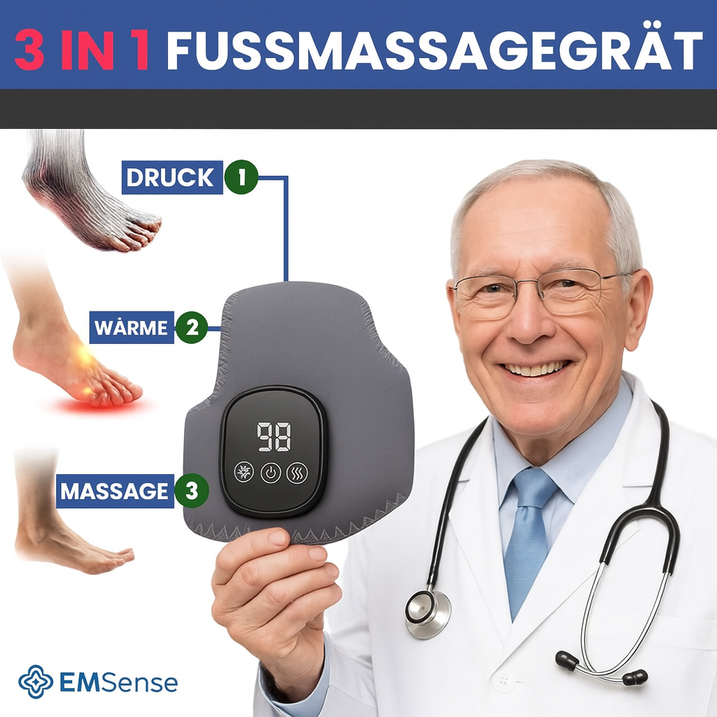 Wenn du unter Fußschmerzen, Brennen, Kribbeln oder Taubheitsgefühlen leidest – sei es durch Neuropathie, diabetische Neuropathie, Plantarfasziitis oder eine schlechte Durchblutung – hast du wahrscheinlich schon alles ausprobiert: Kompressionsstrümpfe, teure Physiotherapie oder unzählige Massagegeräte. Doch klassische Massagen erreichen oft nicht die tieferen Gewebeschichten, in denen Entzündungen entstehen.